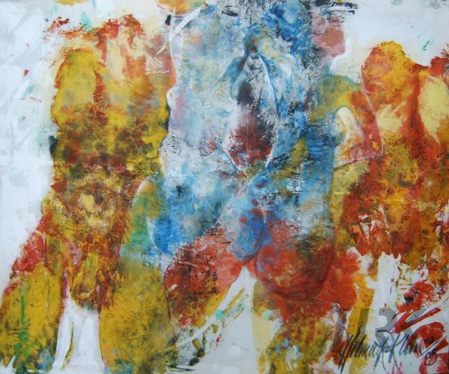 vier Körper, Acryl/Leinwand, Körperfrottage, ca. H 100 x B 120 cm