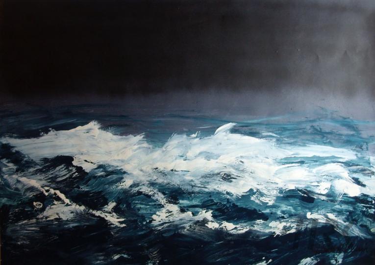 2014 07 IM DUNKEL DER NACHT H 64 x B 90 cm Acryl / Öl / Papier Helmut R. Klein 2