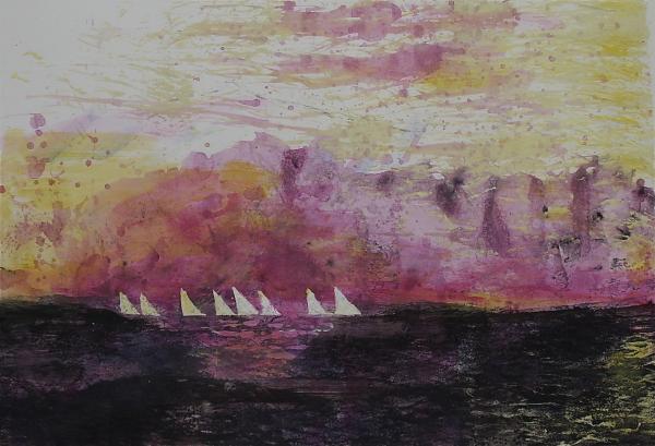 2011 multi-mix-monotypie c Schwimmen im Regen